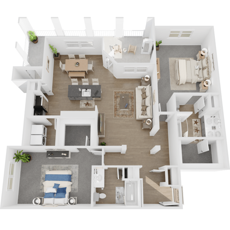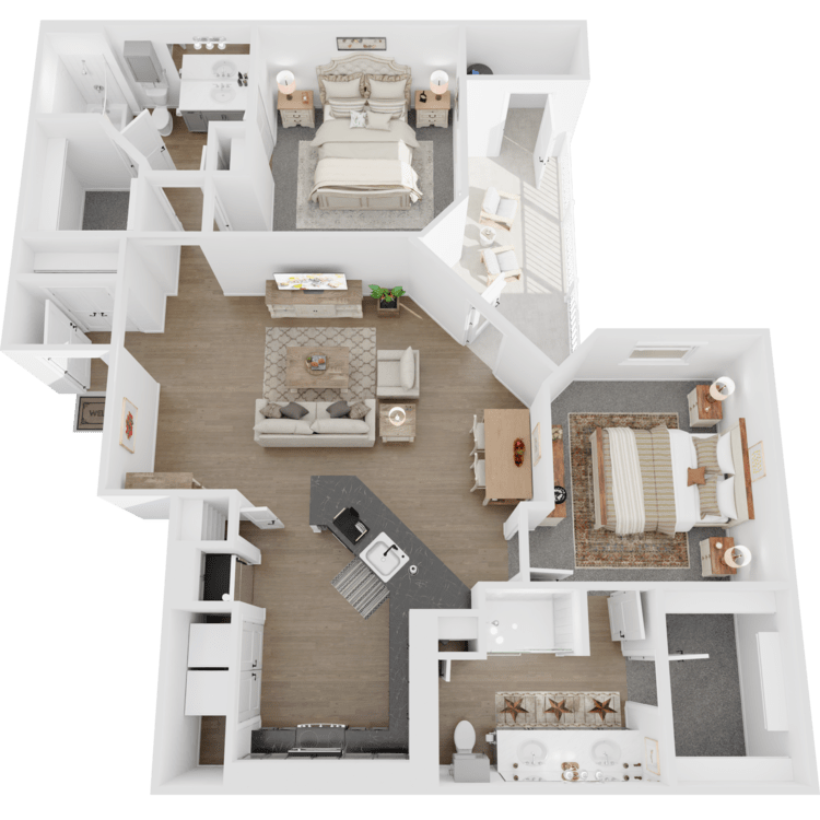 Choose from a selection of one, two, or three-bedroom apartments for rent designed with your needs in mind. Each residence includes walk-in closets, pendent lighting, and deep garden tubs. In select homes, there are built-in desks, yards, and pool views. A balcony or patio increases your living space and provides a relaxing spot to unwind.